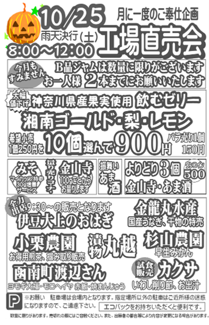 月に一度のご奉仕企画。伊豆フェルメンテ工場直売会のご案内です。