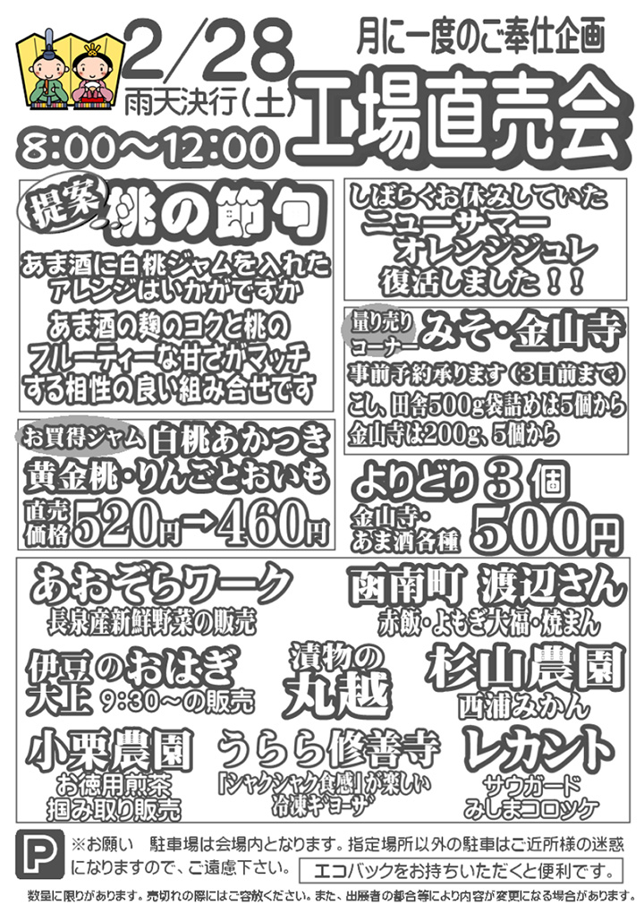 伊豆フェルメンテ工場直売会 2月28日(土)8時より