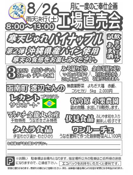 伊豆フェルメンテ工場直売会 8月26日(土)8時より